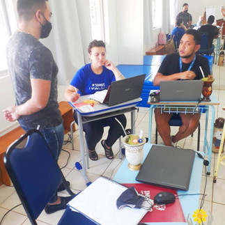 Na quarta (26) e quinta-feira (27) a Associação de Pais e Amigos dos Excepcionais (Apae Lajeado) participou de uma assessoria pedagógica com o professor Alberto Moura, que conversou com os professores e monitores sobre o “Ano da Mudança das Práticas Pedagógicas”. Durante os dois dias de formação, o grupo de professores praticou a Base Nacional Comum Curricular (BNCC) nos planos de aulas para 2022.