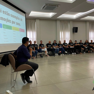 O segundo encontro foi com o diretor de escola, Anderson Barcelos Martins, que conversou com os profissionais sobre “Educação socioemocional”. Segundo Martins, quando se fala de aprendizagem, conteúdo e metodologia, muitas vezes se esquece que aquele sujeito, também precisa desenvolver uma competência socioemocional. “Antes de olhar para o outro, é preciso que o educador se veja, tenha um processo de autoconhecimento, entenda como está lidando com as suas emoções, para que consiga despertar inteligência emocional nas crianças e adolescentes que trabalha”. O diretor conta que é mais delicado ainda na Apae, porque é preciso olhar cada um na sua especificidade, além do diagnóstico e do que foi imposto pelo laudo. “Não conseguiremos desenvolver as competências emocionais da mesma forma, mas exige muito mais do educador a partir de metodologias, começando com paciência até o formato de trabalho”.