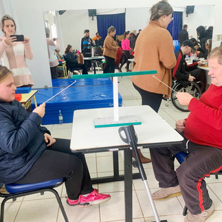 Na última semana, a Apae Lajeado acolheu o pessoal da Adefil, que tinham recebido tão bem os alunos e professores na vez anterior. Foram realizadas atividades de psicomotricidade organizadas pelo professor Rogério Worn (Farelo), em que cada um brincou conforme suas limitações. Ainda jogaram bocha e fizeram um lanche juntos. Foi um momento de alegria, brincadeiras e tranquilidade. No fim, as crianças entregaram um cartão e um pacote de balas como lembrança. As atividades contaram com a colaboração das professoras Magiela, Mariana e Sthéfanie. Foi uma tarde prazerosa e muito divertida.