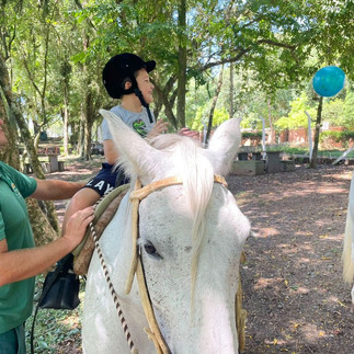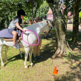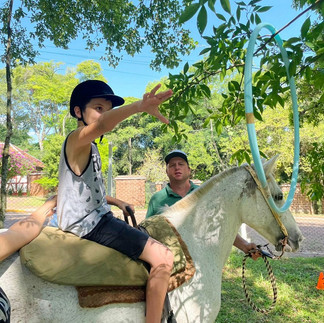 Nas quintas-feiras, nossos praticantes da Equoterapia dão show de desenvoltura em cima dos cavalos. A Equoterapia utiliza o cavalo como agente promotor de ganhos em nível físico e psíquico. A atividade exige a participação do corpo inteiro, o que contribui para o desenvolvimento da força muscular, relaxamento, conscientização do próprio corpo e aperfeiçoamento da coordenação motora e do equilíbrio. Nossos praticantes amam o contato e a troca com os cavalos. O "quintou" na Equo é sempre especial.